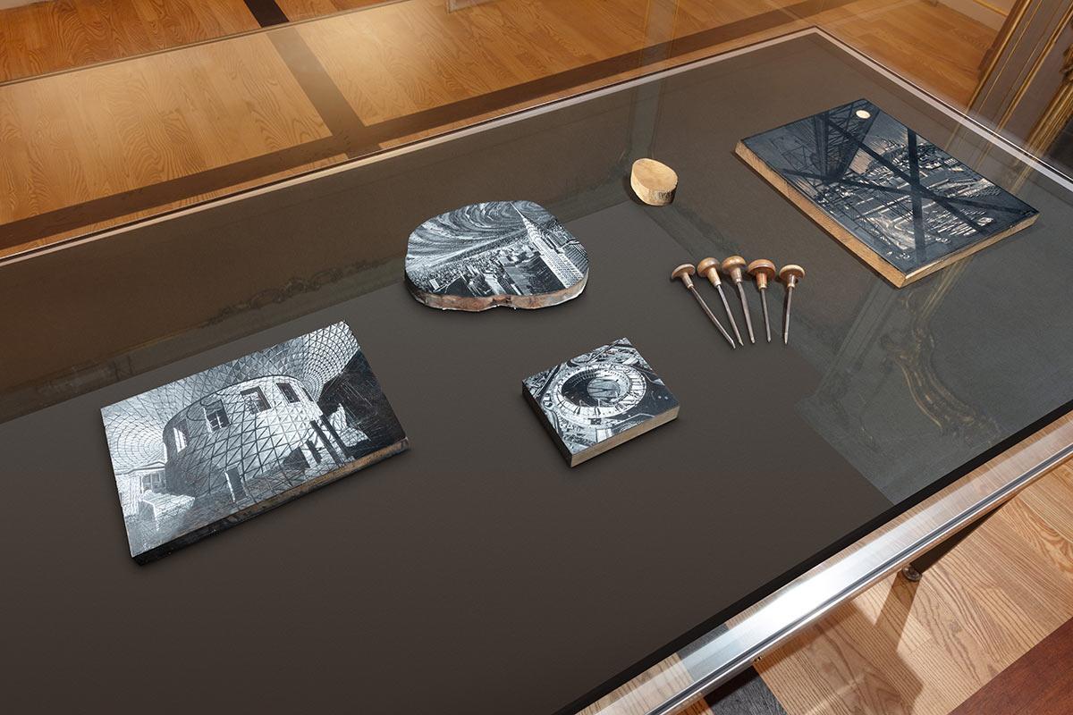 Die Ausstellung von Escher im Palast zeigt neben rund 40 Grafiken von Desmet auch eine Auswahl von Skizzenbüchern, Holzblöcken und Werkzeugen. Die große Stärke beider Künstler ist die Art und Weise, wie sie ihre Darstellungen mit Licht aus der Dunkelheit aufbauen. Ihre Drucke zeigen deutlich das handwerkliche Können und die Präzision der beiden Grafiker. Das Schnitzen eines Holzblocks ist ein zeitaufwändiger Prozess, der viel Geduld erfordert. Die Anfertigung eines komplexen Werks kann bis zu drei Monate dauern, und das Ergebnis ist jedes Mal eine Offenbarung, auch für Desmet selbst: „Das Weiße, das Sie auf dem Papier sehen, ist das, was ich ins Holz graviere. Dass ich Licht aus der Dunkelheit „ausschneiden“ kann, finde ich nach wie vor das Faszinierende an meiner Arbeit."