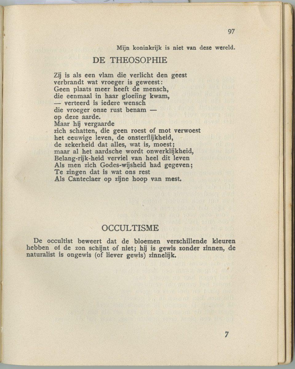 Van Stolk wrote a number of more or less philosophical texts for Flor de Pascua. In it, he explored the meaning of concepts such as Scapegoat, Beauty, and Theosophy.
