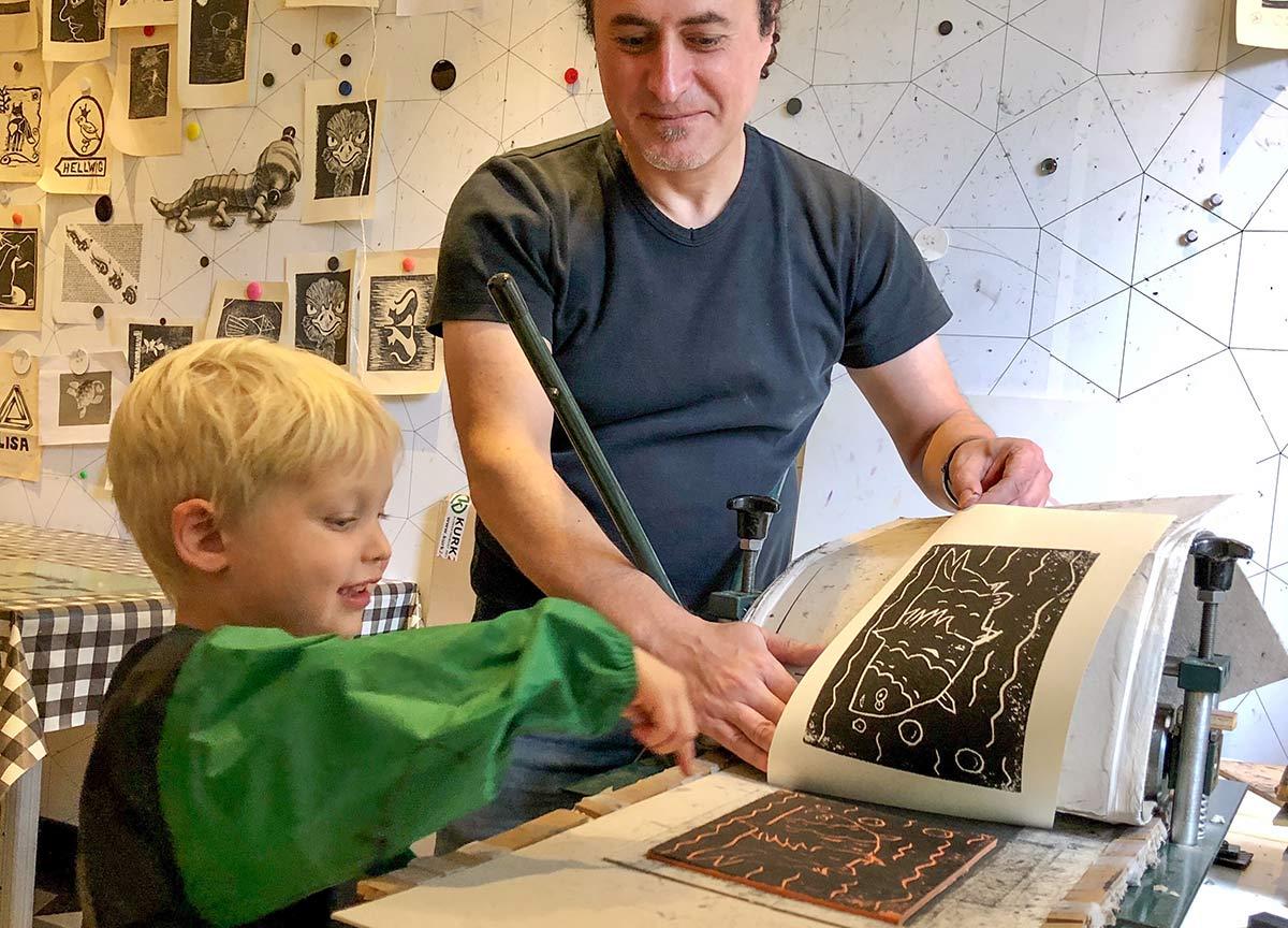 On Sunday, people young and old will get a chance to create their own linocut in a workshop and discover their own creativity. You can join between 12.00 and 16.30 hours.