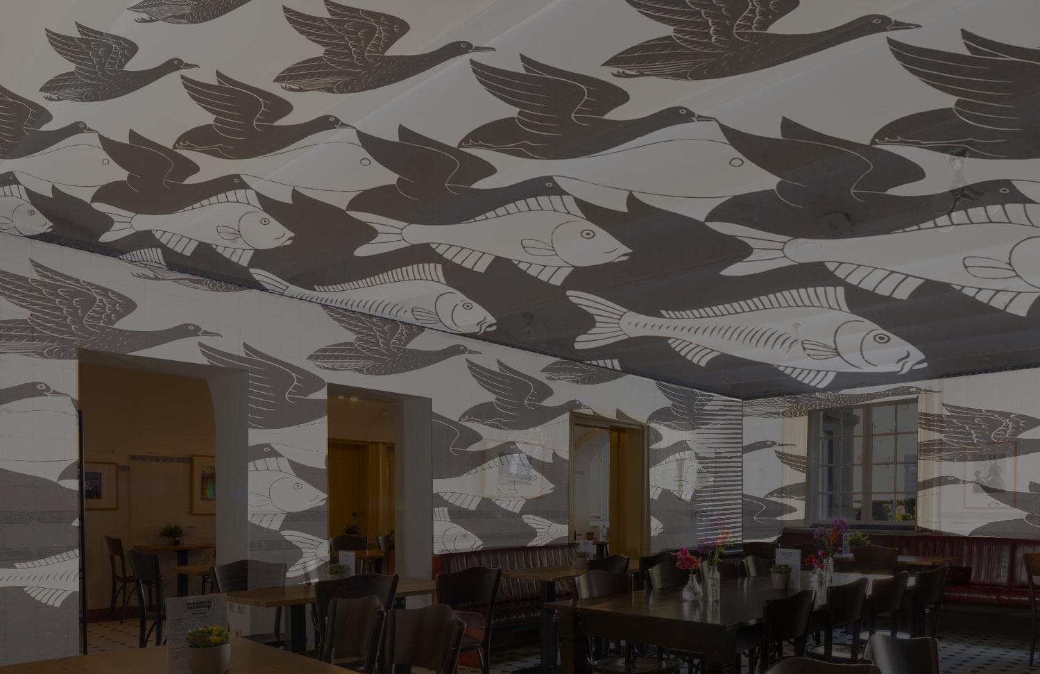 Have you spotted Escher's impossible buildings, endless patterns and metamorphoses? And are you curious to find out what else there is to discover if you zoom in? Then come and chill out in the palace's old kitchen! Take a closer look at Escher's worlds: can you see more now than you could before?
