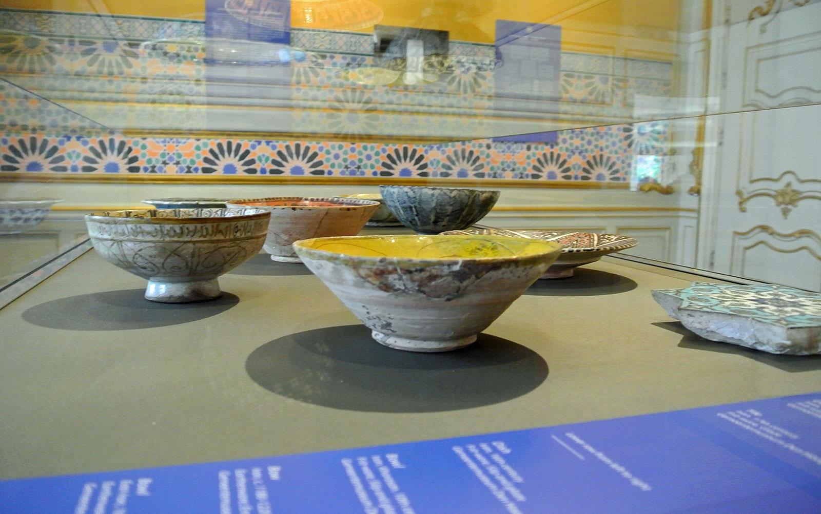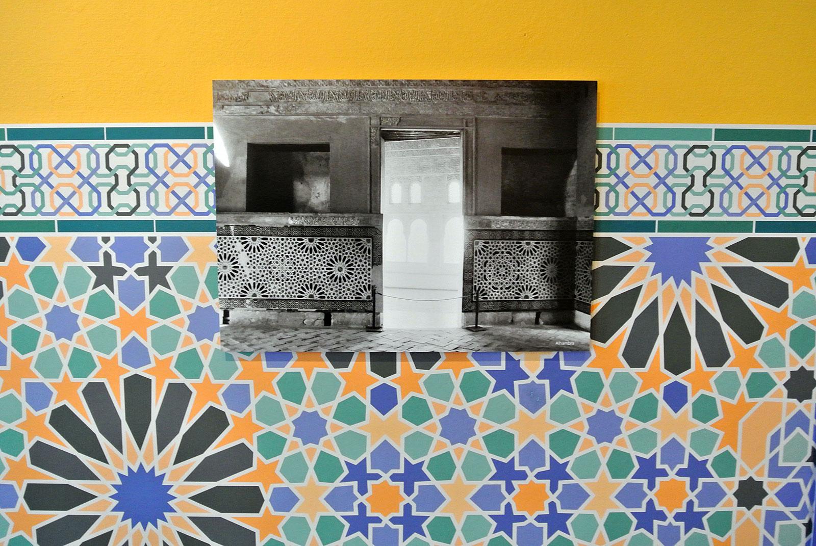 Because M.C. Escher was a printmaker and worked in edition, it was possible to show a number of the same prints in both museums. The Tropenmuseum showed, next to the graphical work of Escher, a focus on his drawings, studies, and tessellation studies. These were combined with masterpieces from the Islamic art collection of the Victoria & Albert Museum in London and with loans from the Kunstmuseum Den Haag. The objects from the Islamic world, shown both in Amsterdam and in The Hague, were used mainly in a non-religious setting. They come from a vast region, extending roughly from Spain to India. Escher has never seen these objects. He got his inspiration from the Spanish-Islamic art in Granada and Córdoba where he in 1922 and later in 1936 copied mosaics with his wife Jetta .