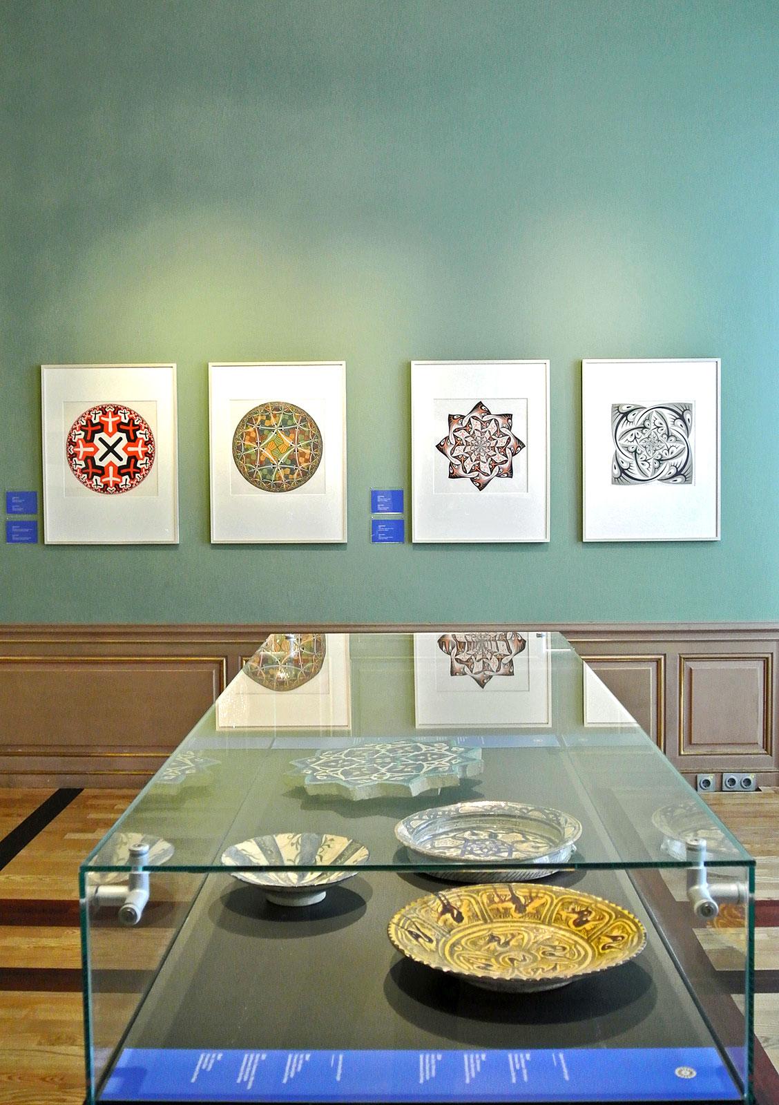 For the first time, two Dutch museums with totally different backgrounds organised a common exhibition in which a comparison between Islamic art and the work of MC Escher was central: Escher & Treasures from the Islam in Escher in The Palace, and Escher meets Islamic Art in the Tropenmuseum in Amsterdam.