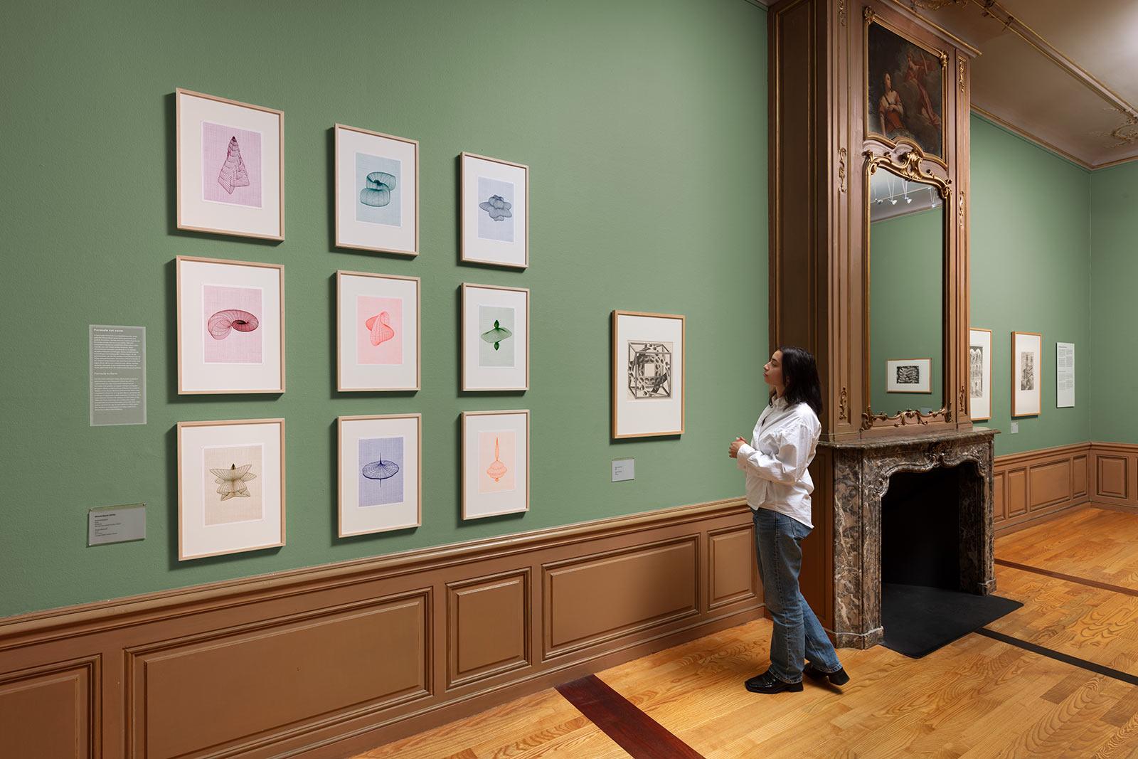 For her Form Informed series of works on paper, Biava took analytical geometry as a starting point. Working with a mathematician, she converted mathematical formulae into graphs on paper. Using a computer programme, Biava combined two different formulae to obtain a new three-dimensional formula that is also visualised in the form of a graph. Her "palette of formulas" is broad: Biava combines the formulae of historically important mathematicians. For Form Informed, she gave the visual interpretations of two formulae their own colour, which she then printed on top of each other.