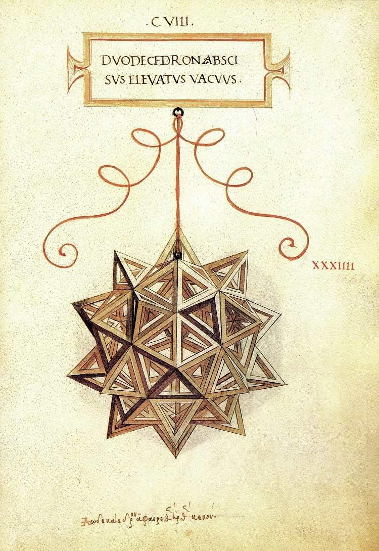 Ook Da Vinci's studies van de beweging van water en de vergelijking van de golven op het wateroppervlak met de stralen van de zon fascineerden hem. Leonardo bestudeerde geologie, fossielen en de vijf regelmatig lichamen van Plato (het vier-, zes-, acht-, twaalf- en twintigvlak en hun afgeleiden). Allemaal onderwerpen die Escher ook bezig hielden.*****