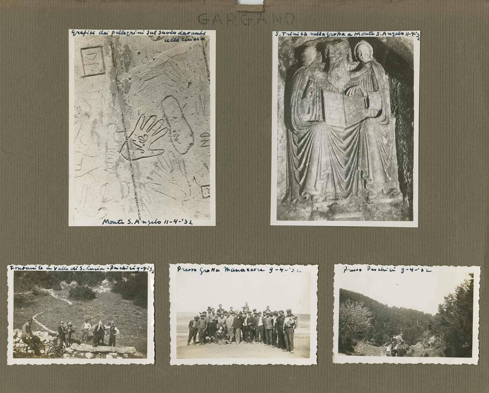 Waarom Escher meeging op de expeditie vertelt de geschiedenis niet. Waarschijnlijk is hij gevraagd door Leopold, met wie hij een vriendschap onderhield, nadat ze elkaar hadden leren kennen bij het Nederlands Historisch Instituut in Rome. Leopold had in 1926 een lovende recensie in het NRC geschreven over een Eschertentoonstelling in het Palazetto Venezia in Rome. Tijdens de expeditie maakte Escher schetsen en foto's van de werkzaamheden. Professor Rellini had met hem afgesproken dat de schetsen zijn eigendom zouden worden. Dat is ook gebeurd en de schetsen zijn nooit meer boven water gekomen. Er zijn tekeningen van prehistorische voorwerpen uit Gargano bekend, maar die lijken niet van Escher te zijn. Wat wel is bewaard, zijn de foto's en de albums waar Escher ze in heeft geplakt. Met daarin keurig het waar en wanneer beschreven, evenals wie er op de foto's is te zien.