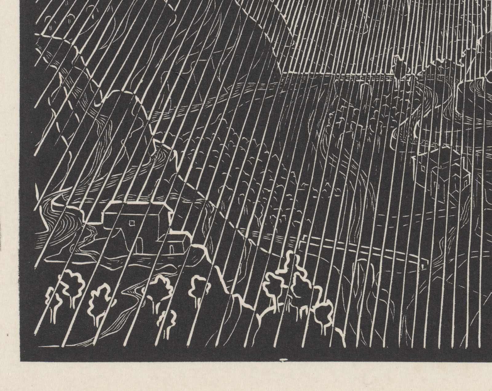 Op 22 mei 1930 waren de vier reisgenoten in het plaatsje Rossano in Calabrië. Ze bezochten het Oratorio di San Marco, een oratorium uit de 10de eeuw dat een van de belangrijkste voorbeelden van Byzantijnse kunst in Italië is. Het gebouw heeft een Grieks grondplan met vijf karakteristieke koepels op cilinders. Hiermee lijkt het veel op de Cattolica van Stilo, het andere belangrijke voorbeeld van Byzantijnse kunst dat de vrienden een aantal dagen ervoor hadden bezocht. In februari 1931 maakte Escher een houtsnede van Rossano. Niet naar een foto, de kunstenaar laat zich in deze prent dan ook gaan. Hij zette het landschap naar zijn hand door de lijnen die wij gewone stervelingen niet zien te accentueren, alsof een goddelijke stralenkrans het landschap optilt.