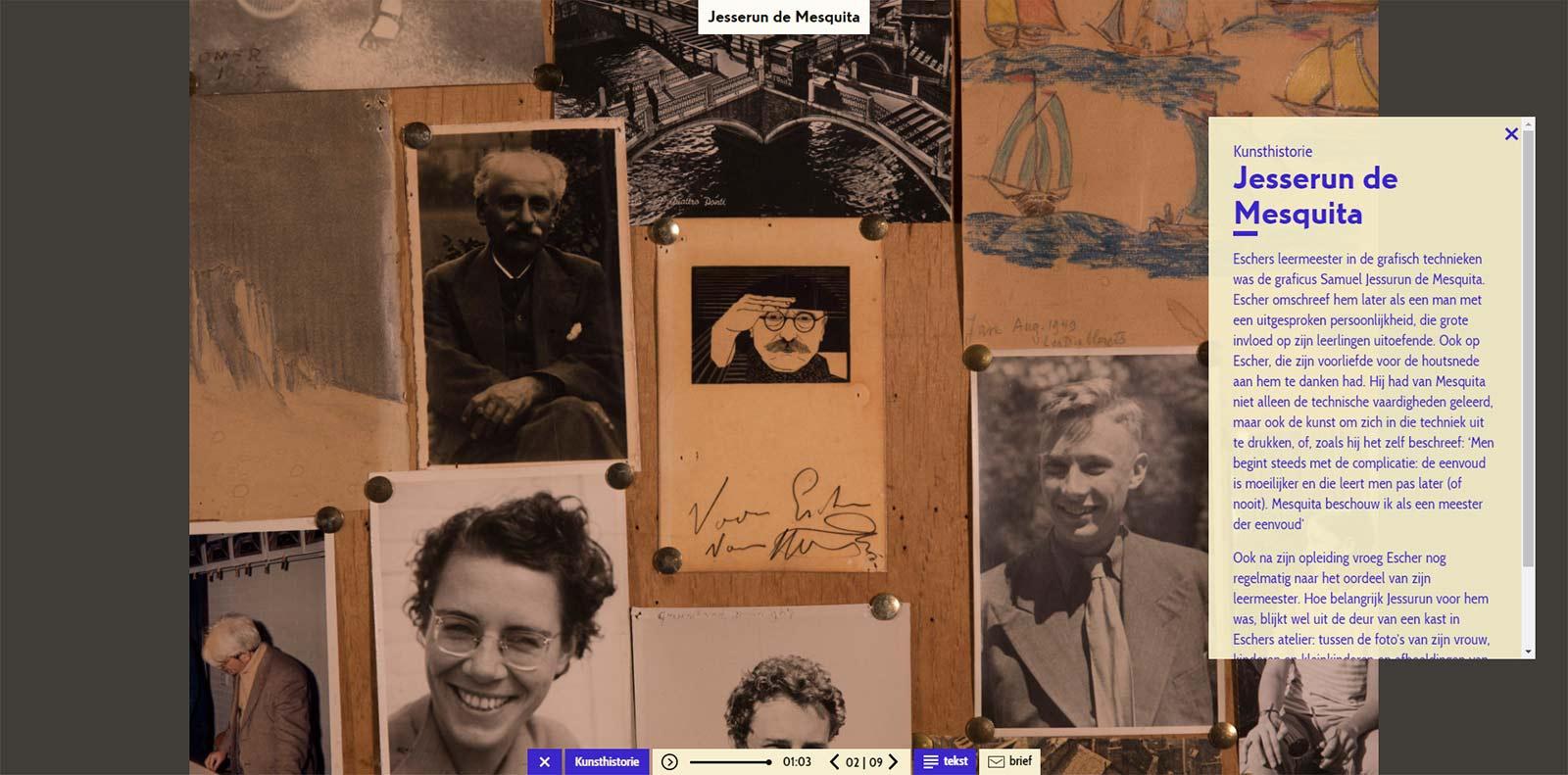 De Metamorfose Van Escher kwam tot stand in samenwerking met de M.C. Escher Foundation, en werd gelanceerd gelijktijdig aan de start van de Escher tentoonstelling in het Fries Museum. Bezoekers van de tentoonstelling kunnen via een digitale tafel de interactieve documentaire beleven. De documentaire is gemaakt door hetzelfde team dat in 2016 de techniek achter Jheronimus Bosch - De tuin der lusten ontwikkelde.