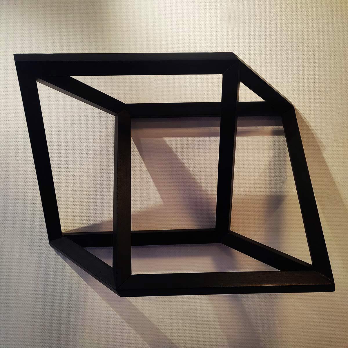 In Escher in Het Paleis is op de tweede verdieping een fysieke onmogelijke kubus te zien, die er vanuit iedere hoek anders uitziet. Deze onmogelijke kuboïde is in 1986 in opdracht van de Stichting Ars et Mathesis (Kunst en Wiskunde) voor de internationale tentoonstelling Impossible Figures gemaakt door Popke Bakker, naar een idee van Dick Baas Becking en een ontwerp van Koos Verhoeff. Het object is gemaakt van vierkante balken, waarvan de naden in elk hoekpunt precies bij elkaar komen. Dit lukt alleen maar als de posities van de acht hoekpunten zorgvuldig worden gekozen. In 1988 werd een grote roestvrijstalen versie door Olivetti Nederland BV aangeboden aan de Erasmus Universiteit Rotterdam ter gelegenheid van het vijfenzeventigjarig bestaan van de universiteit. Die versie is te vinden aan de Burgemeester Oudlaan op de universiteitscampus in Rotterdam.