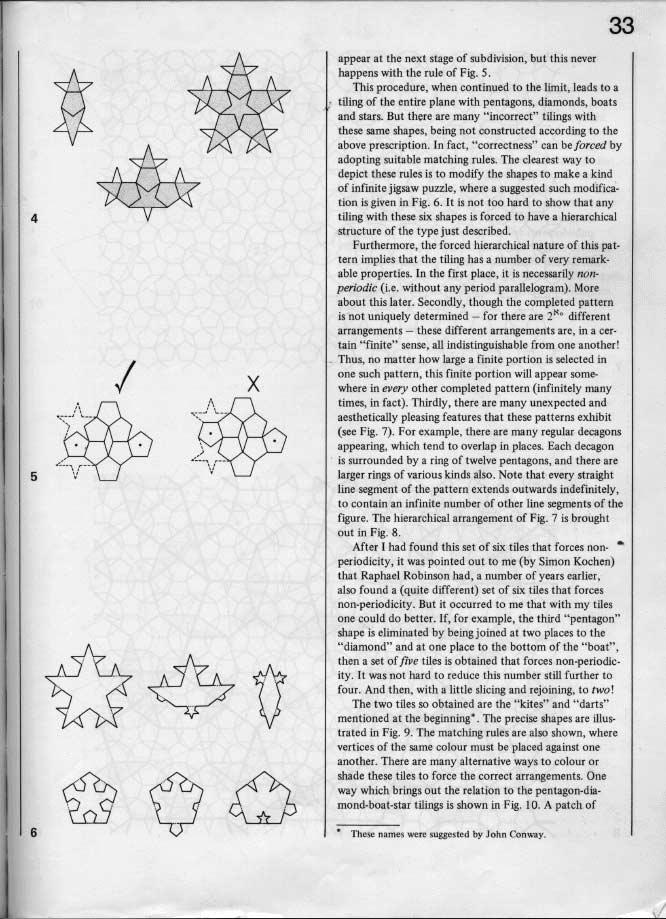 In het artikel met de titel 'Pentaplexity', gepubliceerd in 1979 in het wiskundig tijdschrift Eureka, beschreef Penrose zijn zoektocht naar a-periodieke betegelingen.