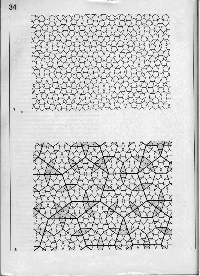 In Science van februari 2007 publiceerden Peter Lu en Paul Steinhardt hun onderzoek naar patronen in vroege middeleeuwse Islamitische kunst. Zij ontdekten dat daarin al vlakvullingen voorkomen met niet-herhalende patronen. Een van die voorbeelden is de boog van het vijftiende-eeuwse Darb-i Imam-grafcomplex in Isfahan, Iran. Die is versierd met een tegelmozaïek dat wel geordend is, maar geen herhalingen bevat. Hoewel er discussie is onder wetenschappers wanneer die patronen precies zijn aangebracht, staat vast dat ze pas honderden jaren later in het Westen werden ontdekt.