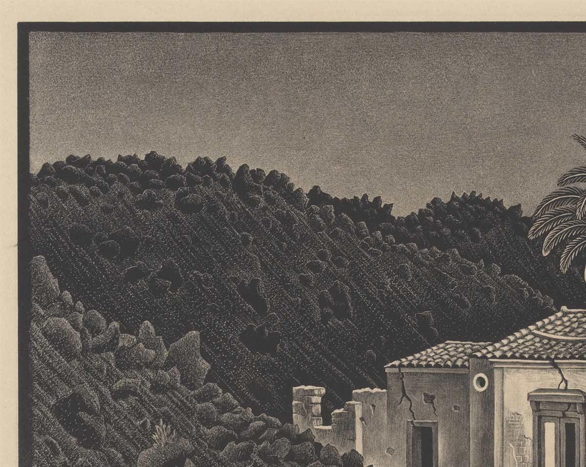 M.C. Escher, Huisje in de lava bij Nunziata, Sicilië, litho, augustus 1936