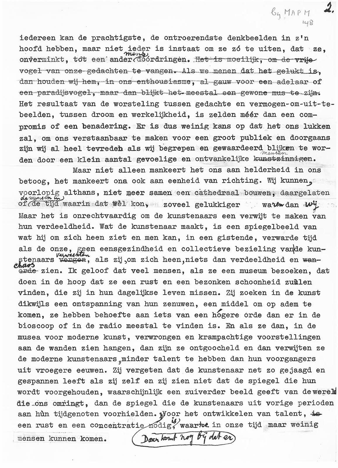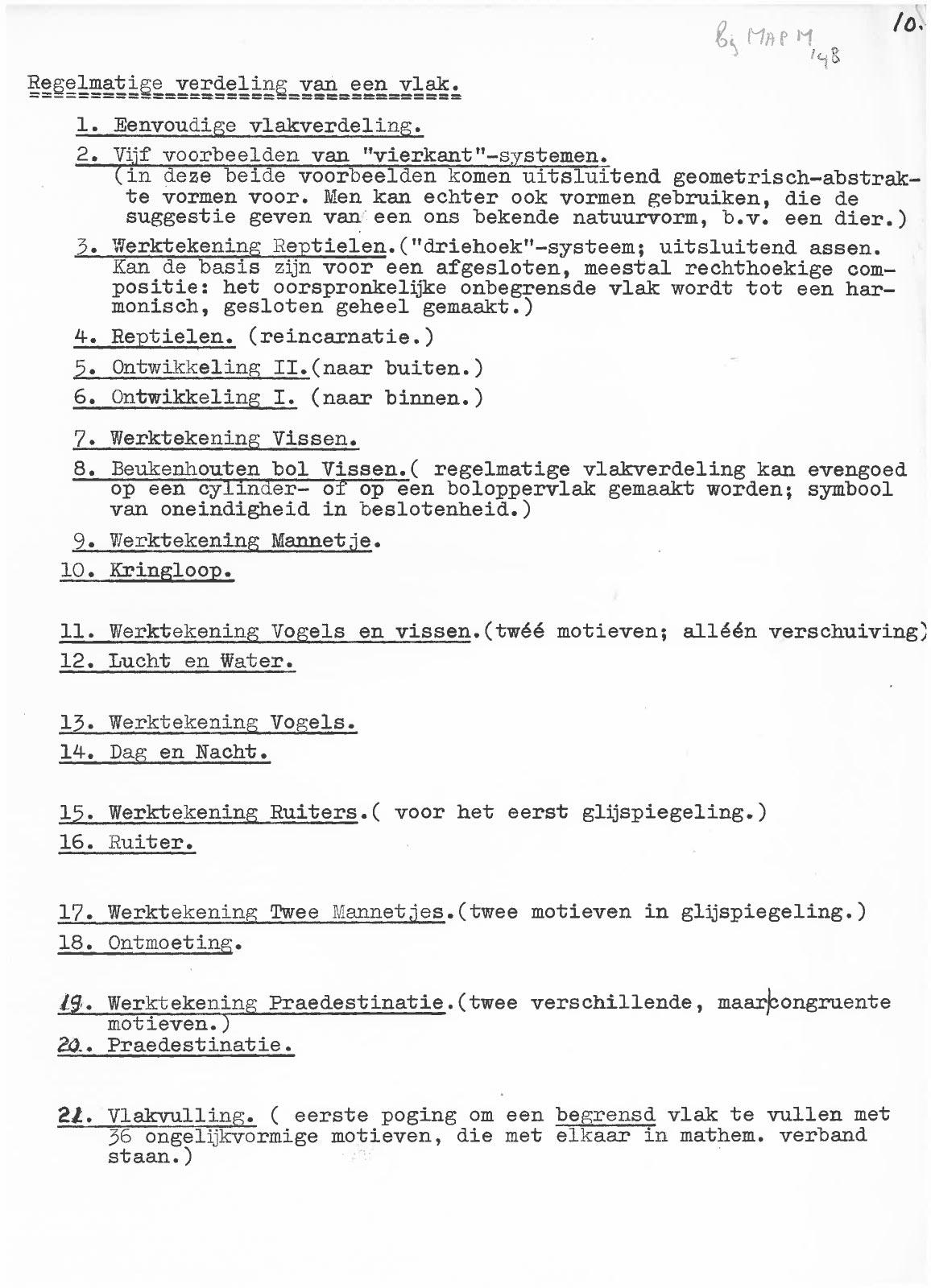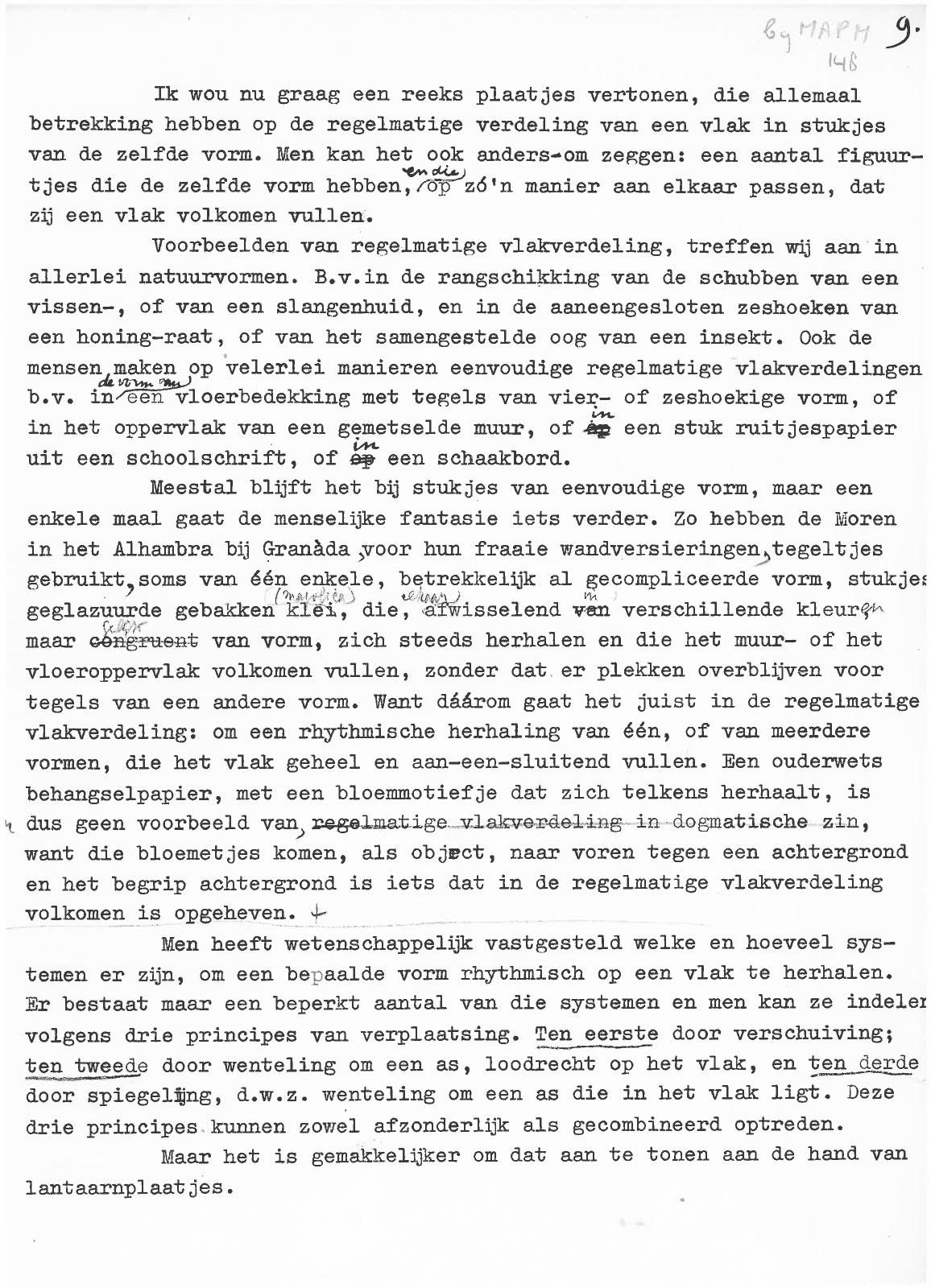 Op 16 november 1953 houdt Escher een lezing voor de 'Vrienden van het Stedelijk Museum' in Alkmaar, ter gelegenheid van een tentoonstelling van zijn werk. In die jaren lukt het Escher regelmatig om te exposeren in musea, galerieën en universitaire instituten. Vaak in gezelschap van twee of meer collega's uit de vereniging van Nederlandse Grafici. Meestal gaat dit vergezeld van een lezing over zijn eigen werk.