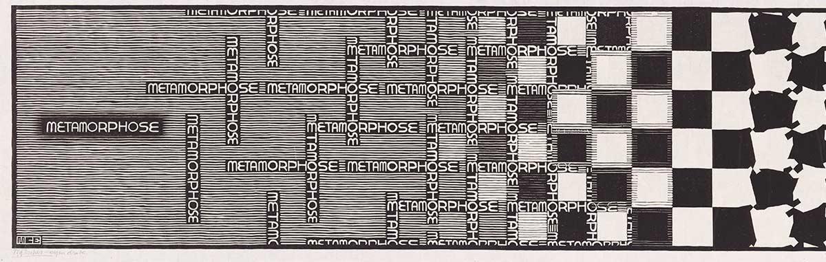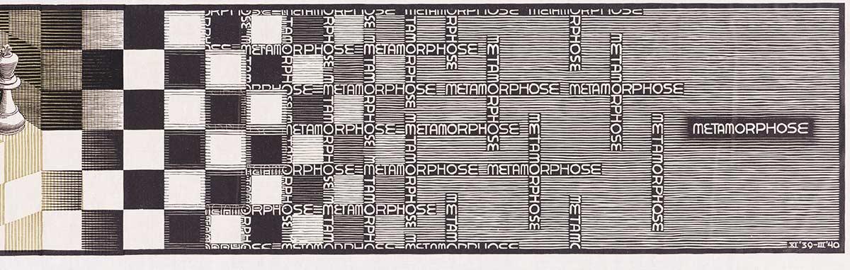 Terwijl Europa aan de vooravond van de Tweede Wereldoorlog stond, begon Escher in oktober 1939 aan zijn grote 'Metamorphose II' (19,5 x 400 cm). Hij werkte er bijna zes maanden onafgebroken aan. In die maanden schreef hij meerdere brieven aan zijn vriend Hein 's-Gravezande* waarin zijn obsessie met de houtsnede duidelijk naar voren kwam. Zo schreef hij gedetailleerd over zijn bedoelingen en werkwijze en hij associeerde vrijelijk over de mogelijke betekenis van de kleuren, de vissen, de bijen, de vogels en de (saraceense?) toren.