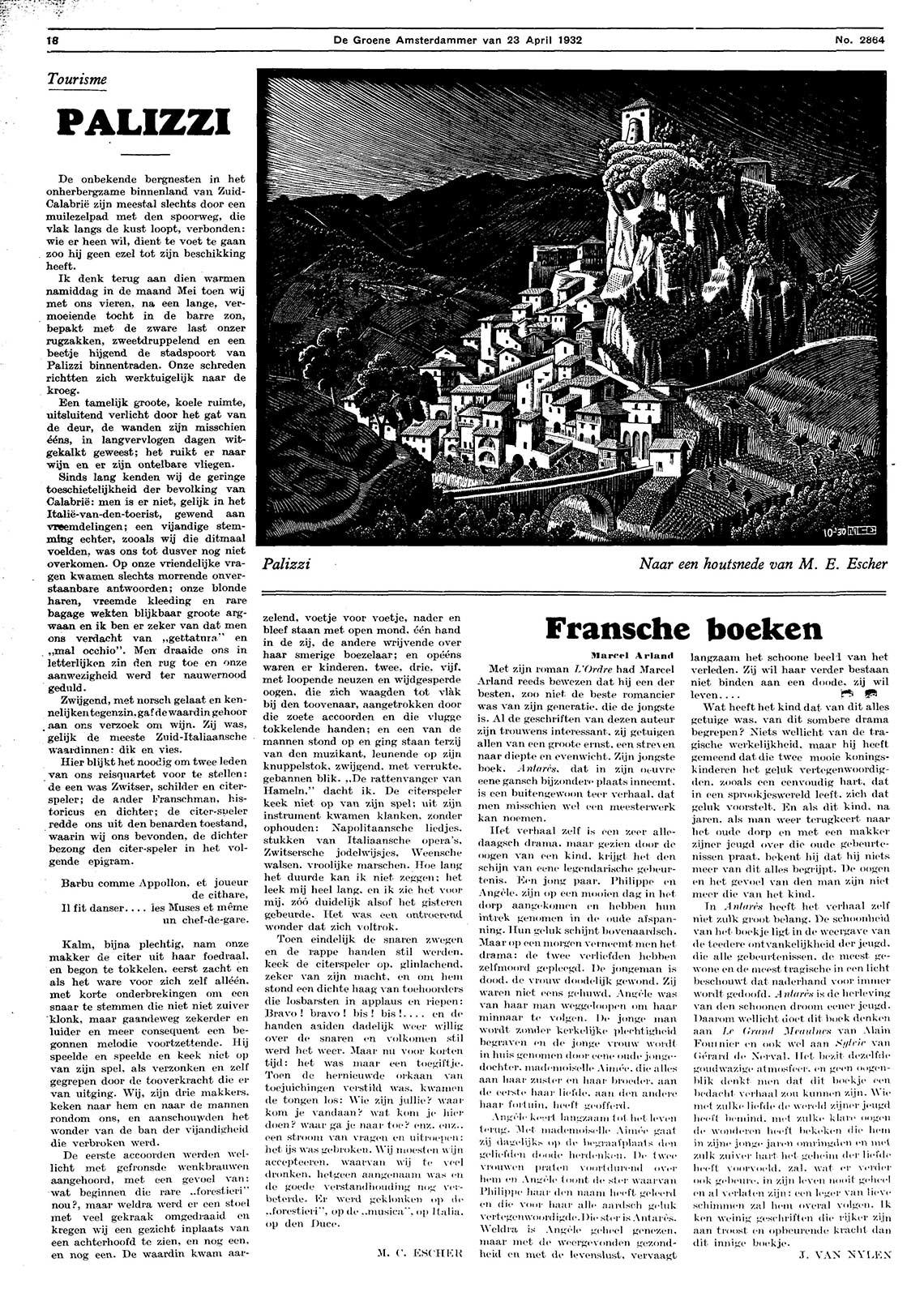 Escher himself wrote a travel report of this trip which was published in Dutch weekly news magazine De Groene Amsterdammer on 23 April 1932:
