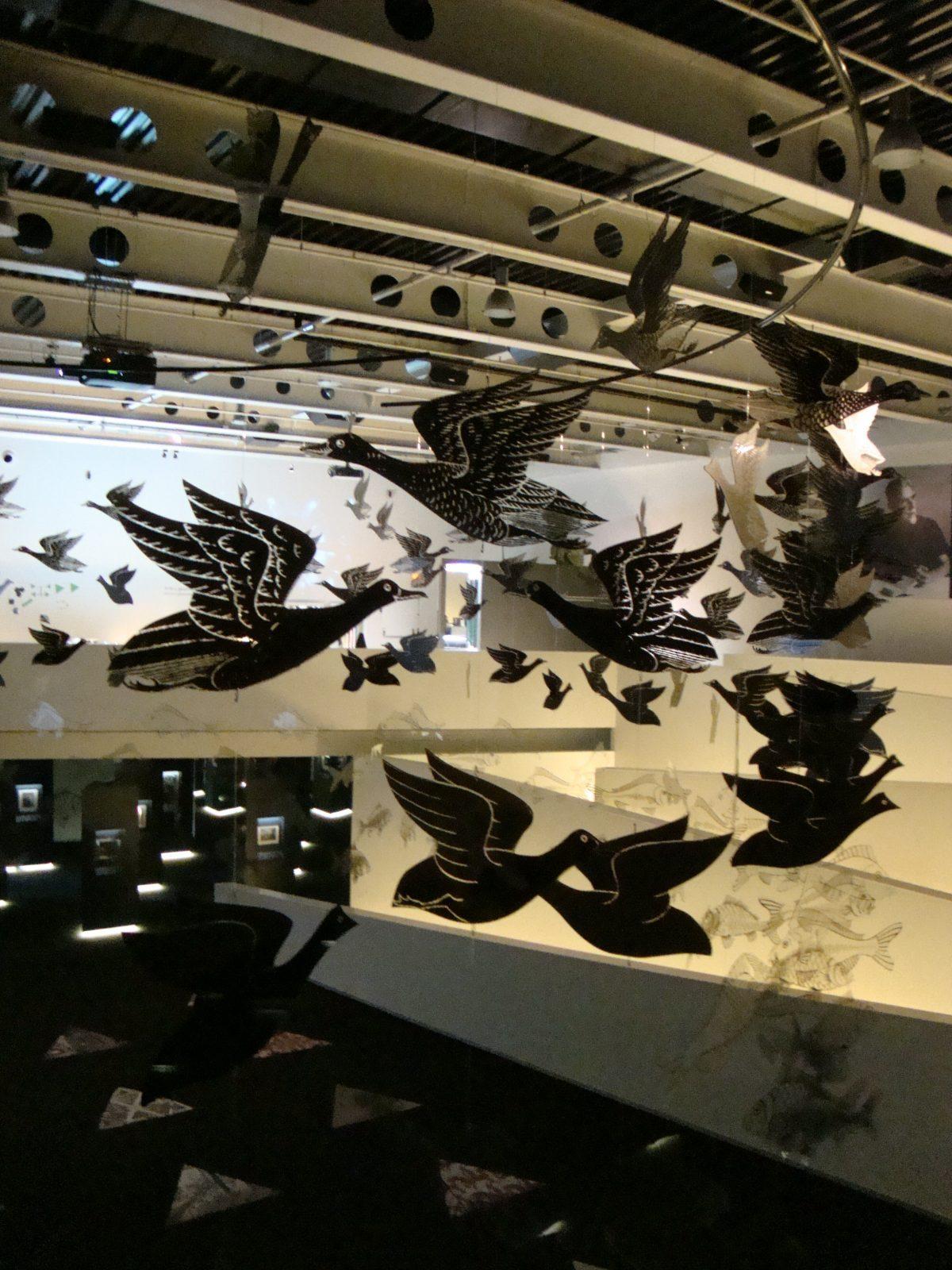 PS. Visitors to the exhibition M.C. Escher. Universos Infinitos at Parque de las Ciencias in Granada (2011) were treated to a beautiful mobile display of the fish and birds from Sky and water, swaying beautifully in the light breeze of the air conditioning system.