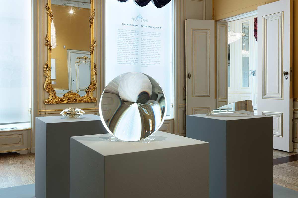 The abstract geometric optical glass art of Václav Cígler (b. 1929), Lubomír Arzt (1946-2015), Miloš Balgavý (b. 1955), Pavol Hlôška (b. 1953), Zora Palová (b. 1947) and Štěpán Pala (b. 1944) was on display in several places at Emma the Queen Mother’s former winter palace from 7 July to 8 November 2020 for everyone to see and admire, from all angles.