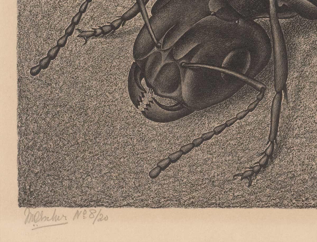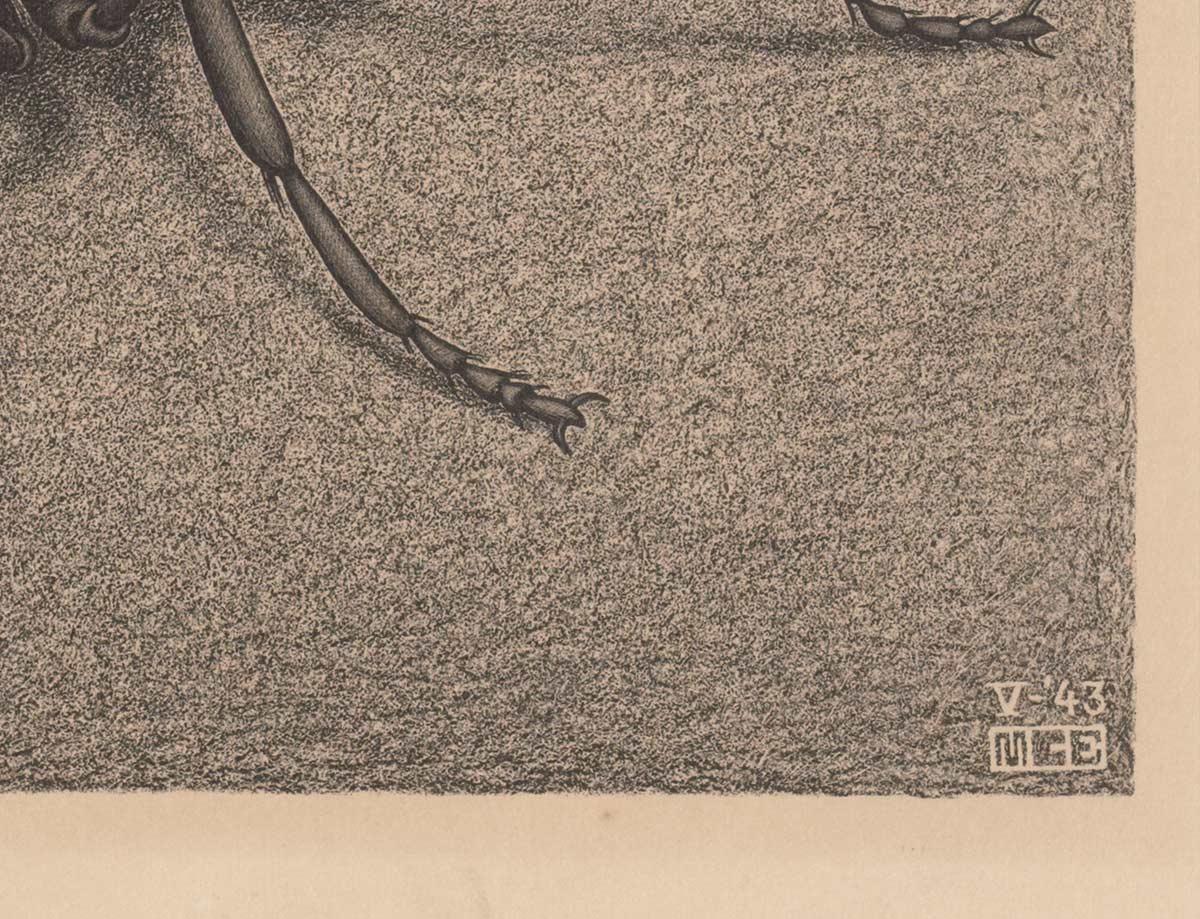 But today we will not be concentrating on a tessellation but rather on an individual animal. A creature that rivals Escher in terms of diligence. He created this gem right in the middle of his long search for variations in regular divisions of the plane, with an ever-present WWII as a backdrop.