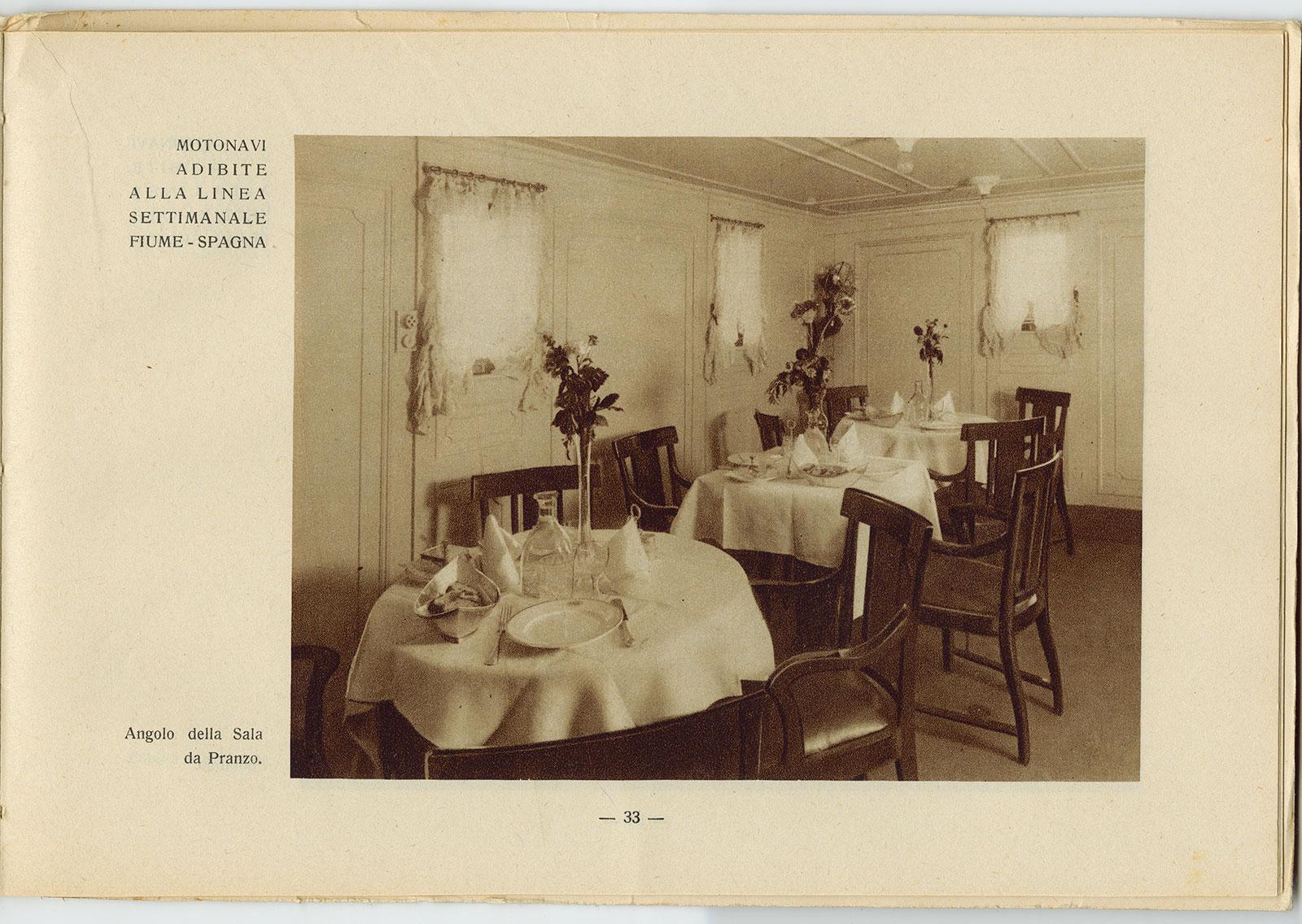 On 27 April 1936, Escher arrives in Fiume, modern-day Rijeka in Croatia. This is where the company is headquartered. Escher is handed the archive, and is invited to select the ports he wishes to visit. He is also handed a letter to avert any unforeseen problems with the port authorities. He is treated like a king. He is personally introduced to the captain of the ship, and is assured that wine will be served with every evening meal. Although the boats are officially cargo ships, around thirty passengers are permitted on board. They live in relative luxury, as can be seen in the photos in the advertising brochure. Little wonder, therefore, that Escher and Jetta are served wine during dinner.