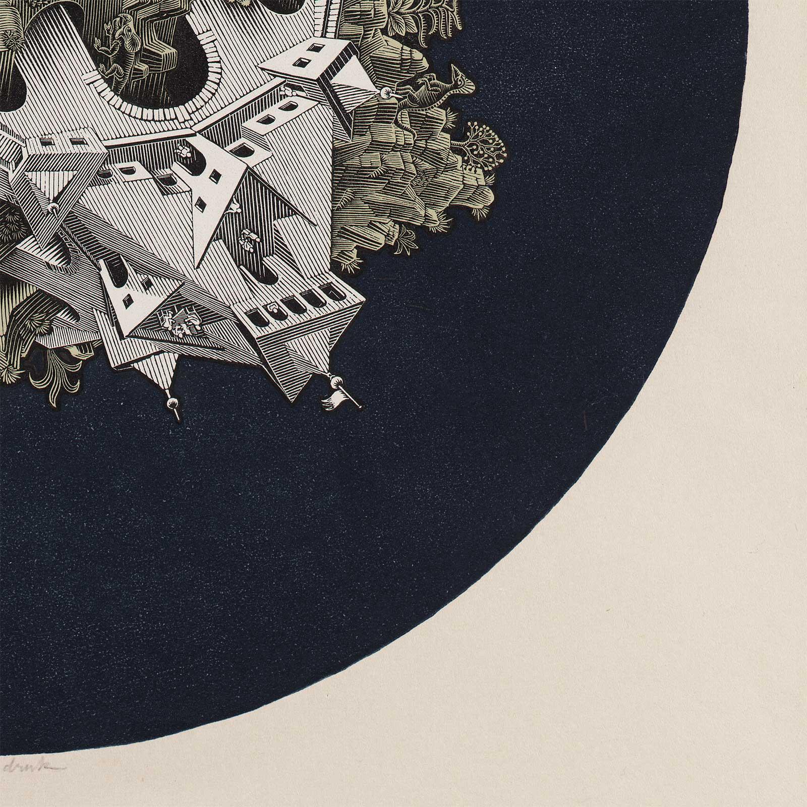 Twee prachtige werken waarin Escher een complete buitenaardse beschaving weet te scheppen. Met deze sciencefictionwerelden onderzoekt hij hoe hij verschillende zwaartekrachten of perspectieven op een visueel geloofwaardige manier met elkaar kan verbinden. Door die zwaartekrachten in een buitenaardse omgeving te plaatsen, lijkt dit logischer, makkelijker voorstelbaar.