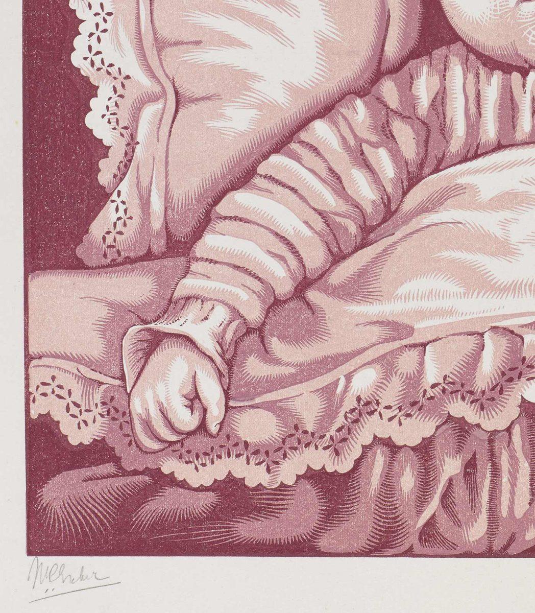In de maand van de doop maakte Escher ook nog een houtsnede van zijn zoon, in heel bijzondere kleuren.
