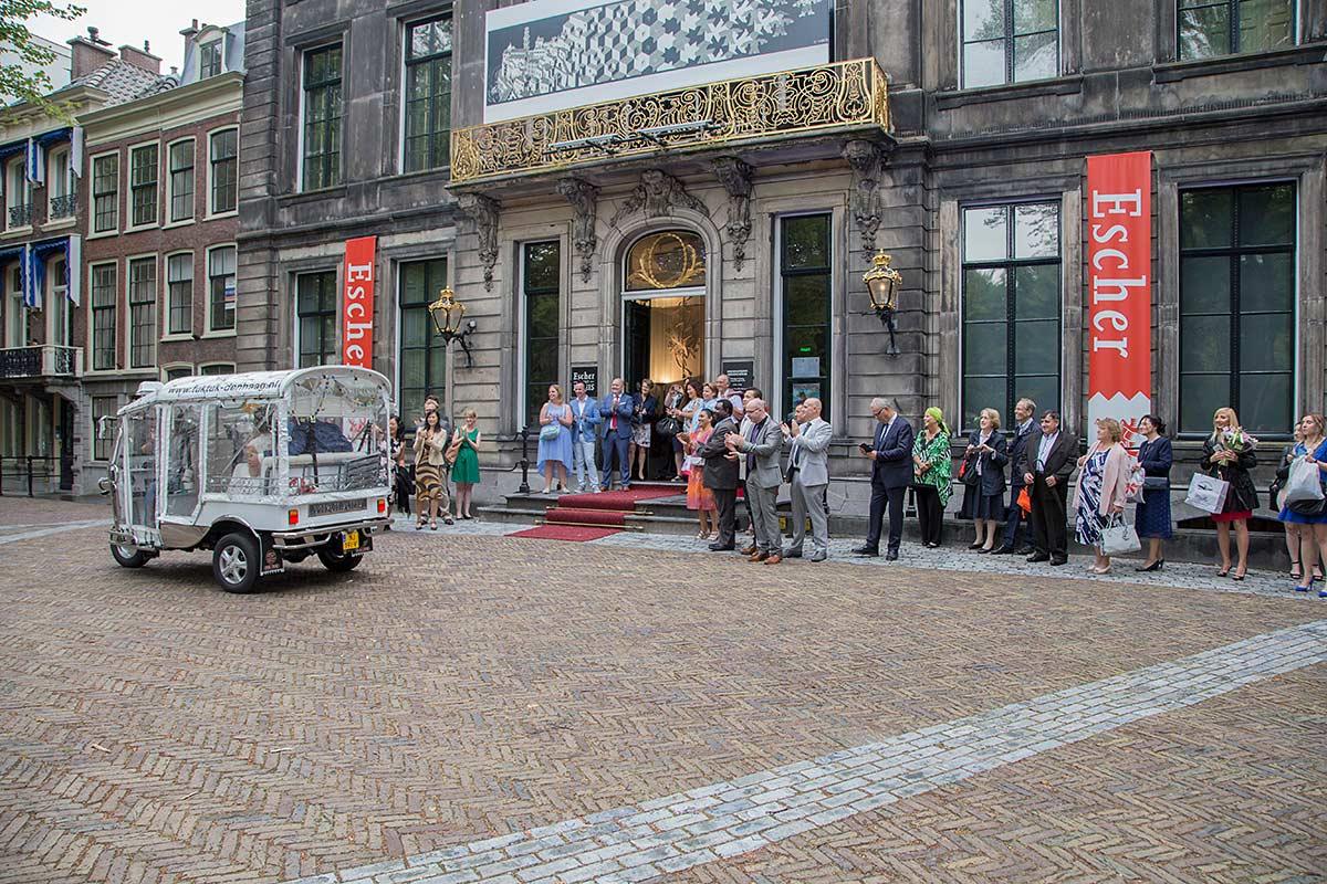 Twintig jaar geleden, op 16 november 2002, werd Escher in Het Paleis geopend door premier Balkenende. Het museum groeide in de afgelopen twee decennia uit tot een bezoekersmagneet waar iedereen het hele jaar door kan genieten van de wereldberoemde graficus M.C. Escher. In die periode is Escher in Het Paleis dé plek geworden waar je het hele jaar door alles kan leren en zien over Eschers leven en werk. Daarnaast heeft Escher in Het Paleis in die 20 jaar altijd aandacht besteed aan de geschiedenis van Paleis Lange Voorhout, het voormalige winterpaleis van Koningin-Moeder Emma. Dit heuglijke feit wordt met allerlei festiviteiten gevierd tijdens ons jubileumweekend op 19 en 20 november.