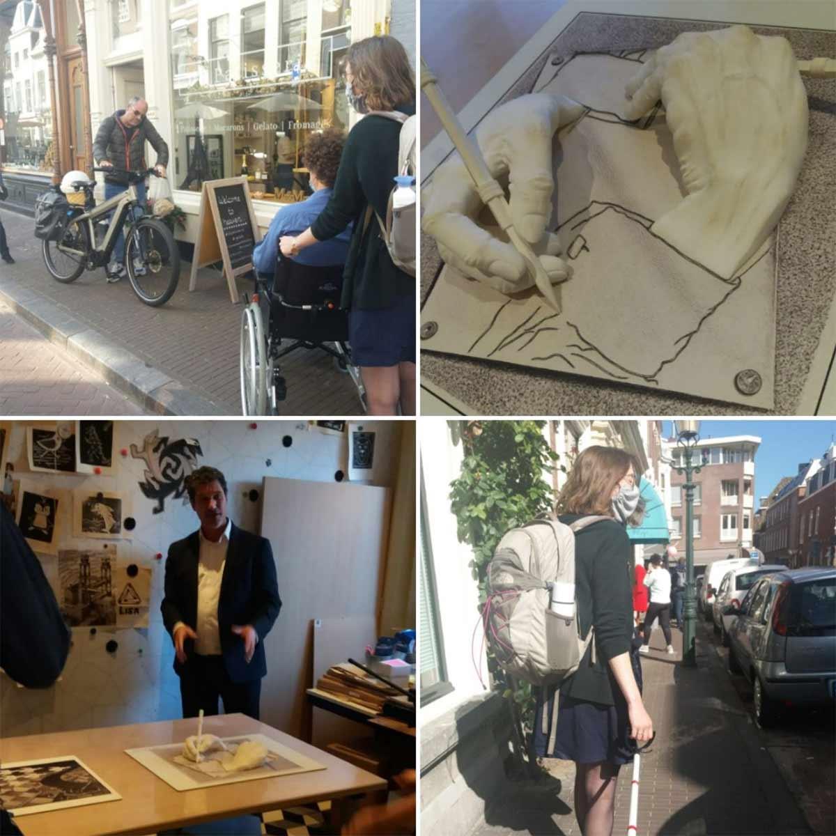 Afgelopen vrijdag kwam de nieuwste groep VNG trainees namens de Gemeente Den Haag langs in Escher in Het Paleis om bij ons meer te leren over de wondere wereld van het VN-verdrag Handicap. Wij zijn een museum dat hard aan het werk is met inclusie en we willen graag de resultaten delen van onze inspanningen. In de ochtend spraken de trainees over het sociaal model, de lokale inclusie agenda en de rol van gemeenten bij het werken aan inclusie. Bij ons mochten ze de resultaten ervaren van ons project voor blinde- en visueel beperkte mensen.