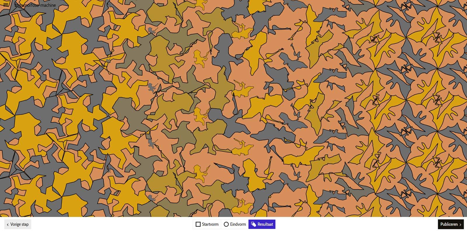 Op de website kun je ook aan de slag met je eigen stukje metamorfose. Technieken die Escher over de jaren met de hand ontwikkelde zitten nu ingebouwd in de Metamorfose Machine. Je kunt je zelf gemaakte afbeeldingen roteren, spiegelen, verschuiven en vervolgens morfen naar een tweede afbeelding. Je gecreëerde werk voeg je vervolgens toe aan het digitale 'Gesamtkunstwerk'; een oneindige online Metamorfose. Ook kun je je eigen werk downloaden, printen en delen met anderen.