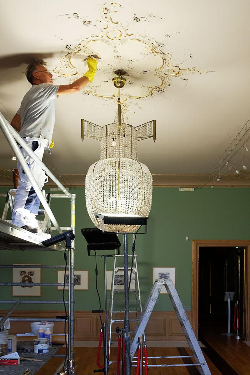 Deze opdracht wordt uitgevoerd door Ruud Geers en zijn team van Geers Schilderwerken, die ook begin volgend jaar de voormalige zitkamer van Koningin-Moeder Emma zullen behandelen.