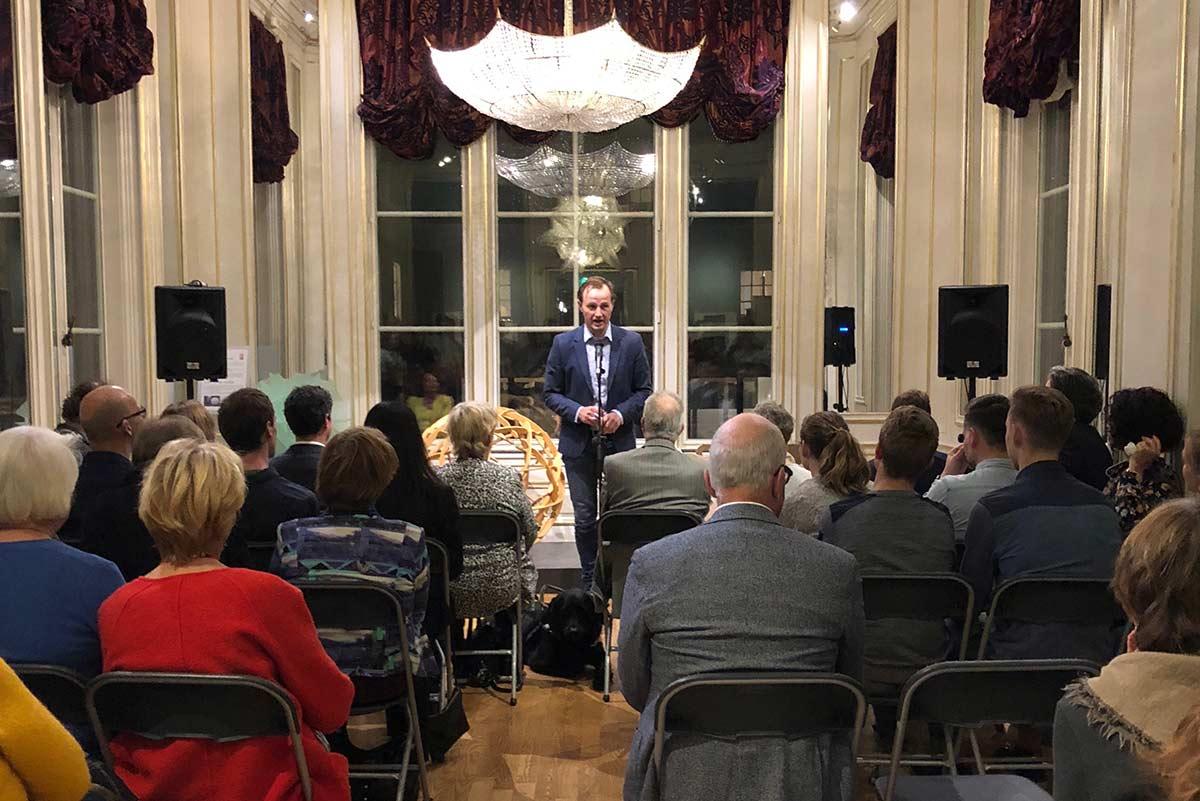 Escher in Het Paleis kijkt met trots terug op een prachtige eerste openingsavond voor blinden en slechtzienden. Ruim 90 gasten zagen hoe Saskia Bruines (wethouder Onderwijs) namens de Gemeente Den Haag de opening verrichtte. Ook luisterden ze naar korte speeches van Benno Tempel (directeur van het Gemeentemuseum en van Escher in Het Paleis), Marcel Westerdiep (general manager van Het Paleis), leerlingen van ISW Hoogeland en leerlingen van de Haagse Hogeschool. De genodigden uit de doelgroep kregen daarna een intensief programma voorgeschoteld bestaande uit een interactieve rondleiding en een sessie waarbij de zintuigen werden aangesproken. Speciaal getrainde rondleiders vertelden over het leven en werk van Maurits Cornelis Escher. De overige gasten konden na afloop van de rondleiding ook genieten van de speciaal ontwikkelde stukken, van Het Paleis en natuurlijk van het werk van Escher. Wij zijn heel enthousiast over het verloop van deze avond en we denken dat we onze blinde en slechtzienden gasten echt iets mee kunnen geven over het leven en het werk van deze meestergraficus. In 2019 zullen er dan ook meer van deze bijzondere openstellingen komen. Houd deze website in de gaten voor meer informatie.