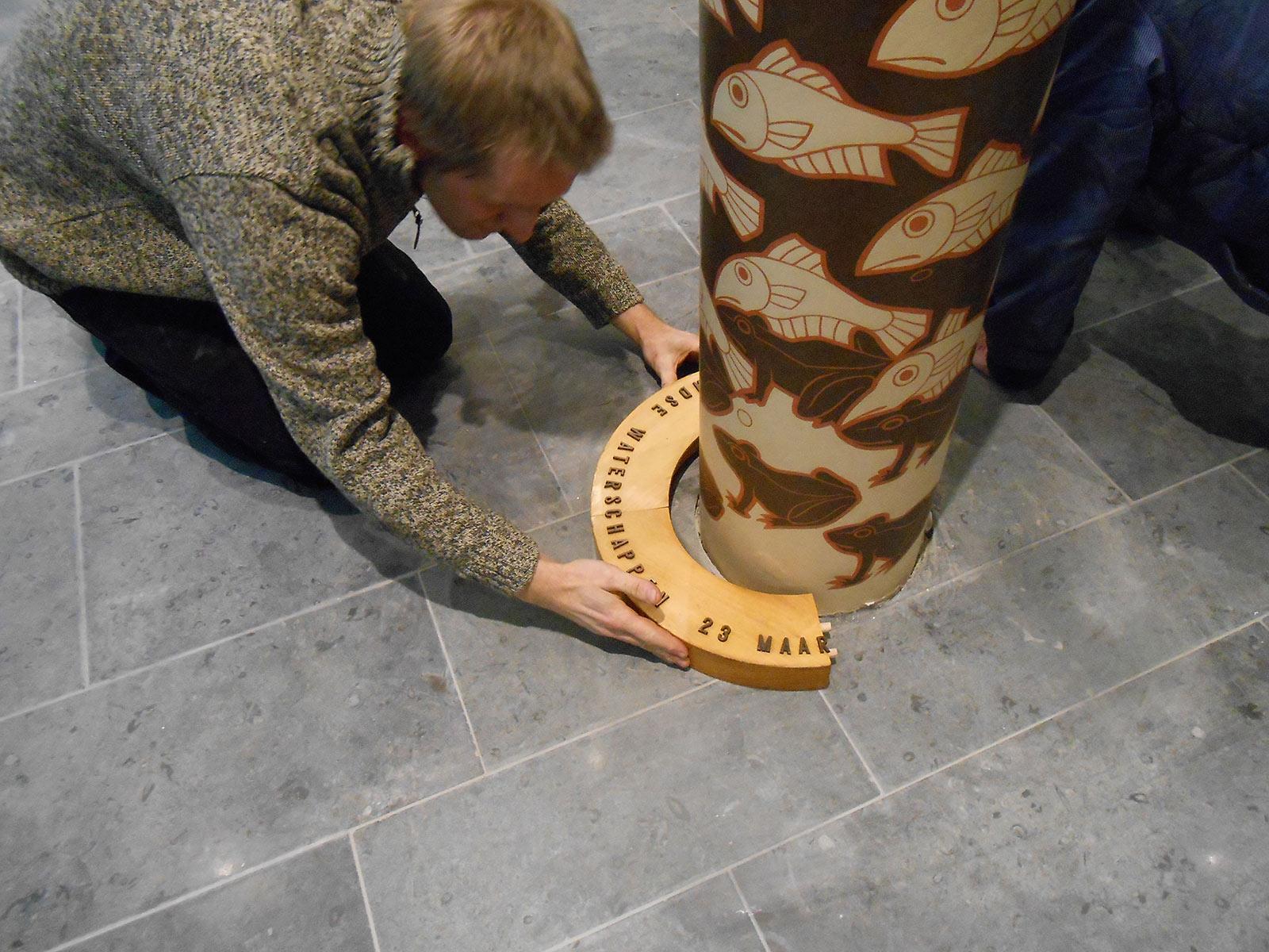 De plaatsing van de zuil in het Provinciehuis, januari 2013