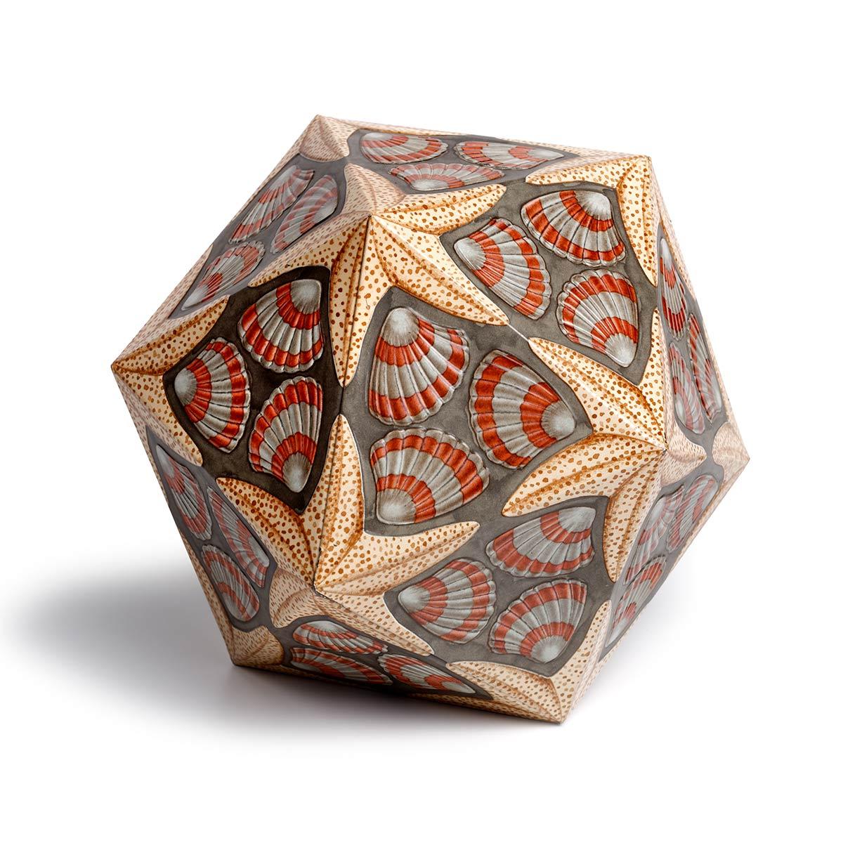 Tussen de zeesterren liggen gestreepte schelpen. Escher was hier volgens Van der Grijn niet helemaal tevreden over, maar bracht dit “offer”, omdat dit een technische voorkeur van de fabriek was. Het resultaat is een verbluffend blikje. Hoe je het ook draait of keert, het patroon blijft altijd hetzelfde door de icosaëder met haar twintig gelijkzijdige driehoeken.