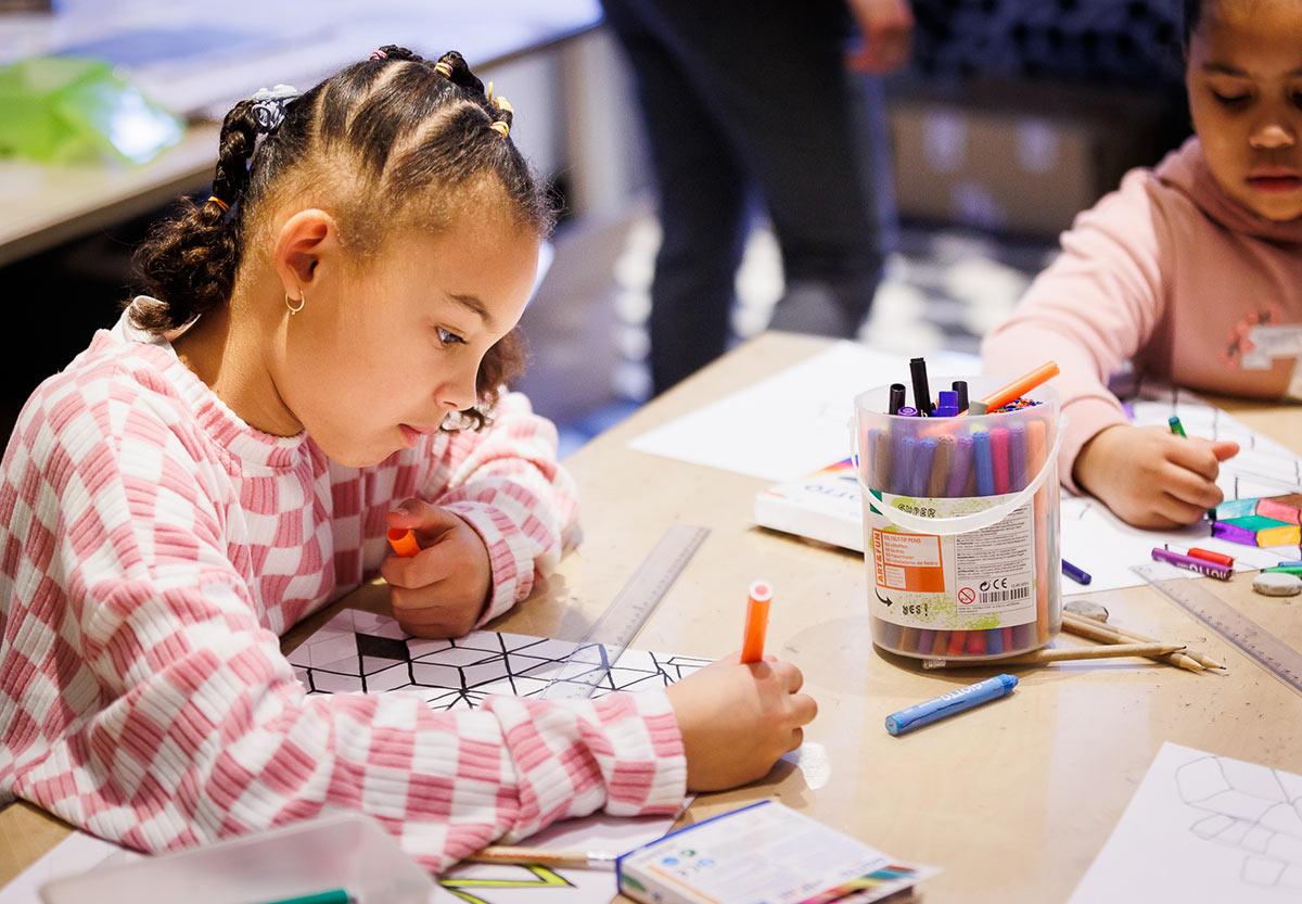 Maak je eigen kunstwerk door te spelen met patronen die oneindig door lijken te gaan. Kunstenaar Inge Aanstoot leert je hoe je zelf een oneindig patroon maakt, met hulp van een spiegel, potlood en papier. Laat je inspireren door Escher en andere creatievelingen die je tijdens museumnacht tegenkomt. Speel, schuif, spiegel en creëer je eigen wereld op papier!