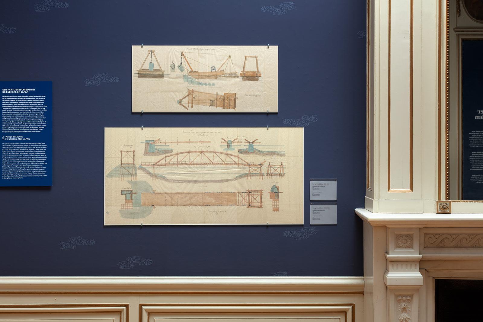 In deze kleine tentoonstelling vertellen de objecten het verhaal van familie, historie en verbinding, met een centrale rol voor de lakdoos en onbekende tekeningen van vader en zoon Escher. Ook schenkt Escher in Het Paleis aandacht aan de rol die vader Escher in Japan speelde door een aantal zeldzame bouwtekeningen van zijn hand te tonen. Deze bijzondere bruiklenen worden samengebracht met objecten uit de eigen collectie. Zo is de zesdelige puzzel uit de lakdoos ook afgebeeld op een uniek werk die in Escher in Het Paleis te zien is. Deze tekening dateert uit 1943, bijna twintig jaar later dan de tekening in de lakdoos. De puzzel houdt M.C. Escher dus jaren later nog altijd bezig.
